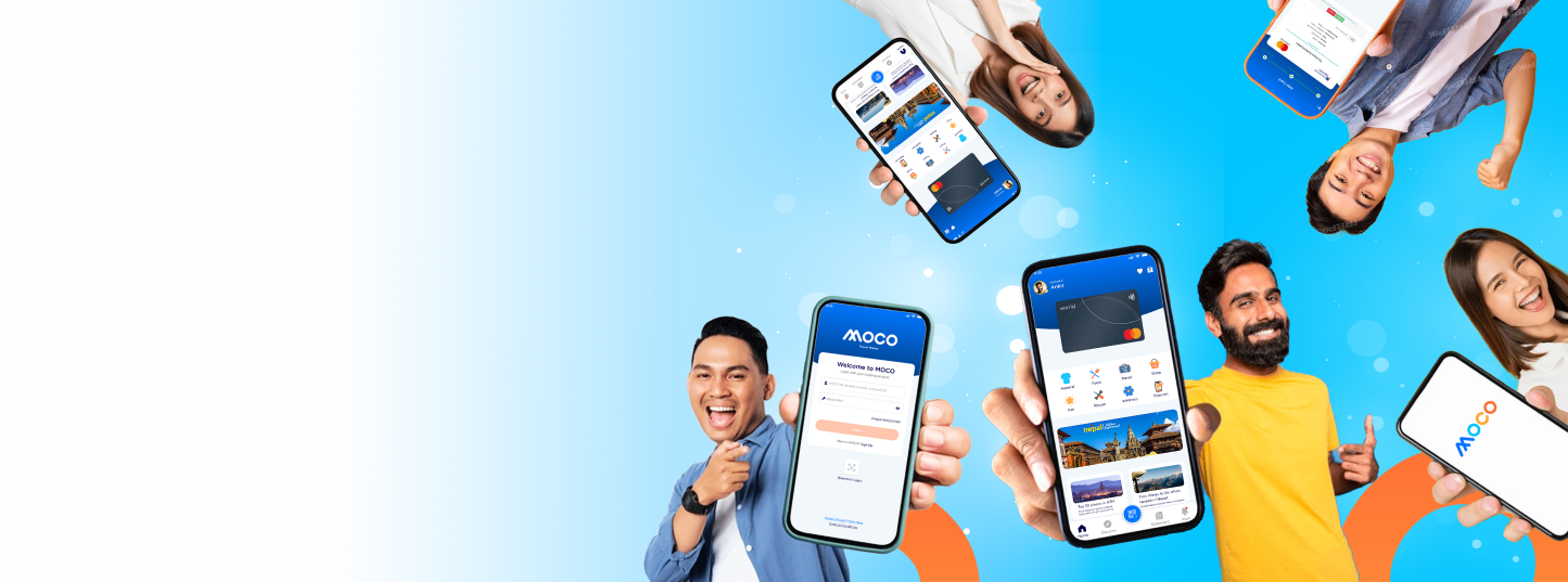 Add multiple VISA and Mastercard debit and credit cards in your MOCO app. MOCO empowers you to conveniently settle bills, book flight tickets, top-up, your balance and more through your credit cards.